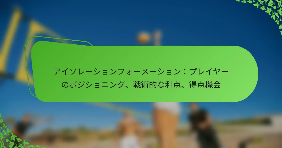 バックローアタックフォーメーションは、バレーボールやバスケットボールなどのスポーツで使用される戦術的アプローチであり、バックローの選手が戦略的に配置されて得点機会を創出します。このフォーメーションを成功裏に実行するためには、効果的な選手の配置とタイミングが不可欠であり、チームは攻撃プレーと守備の責任をバランスよく保つことができます。