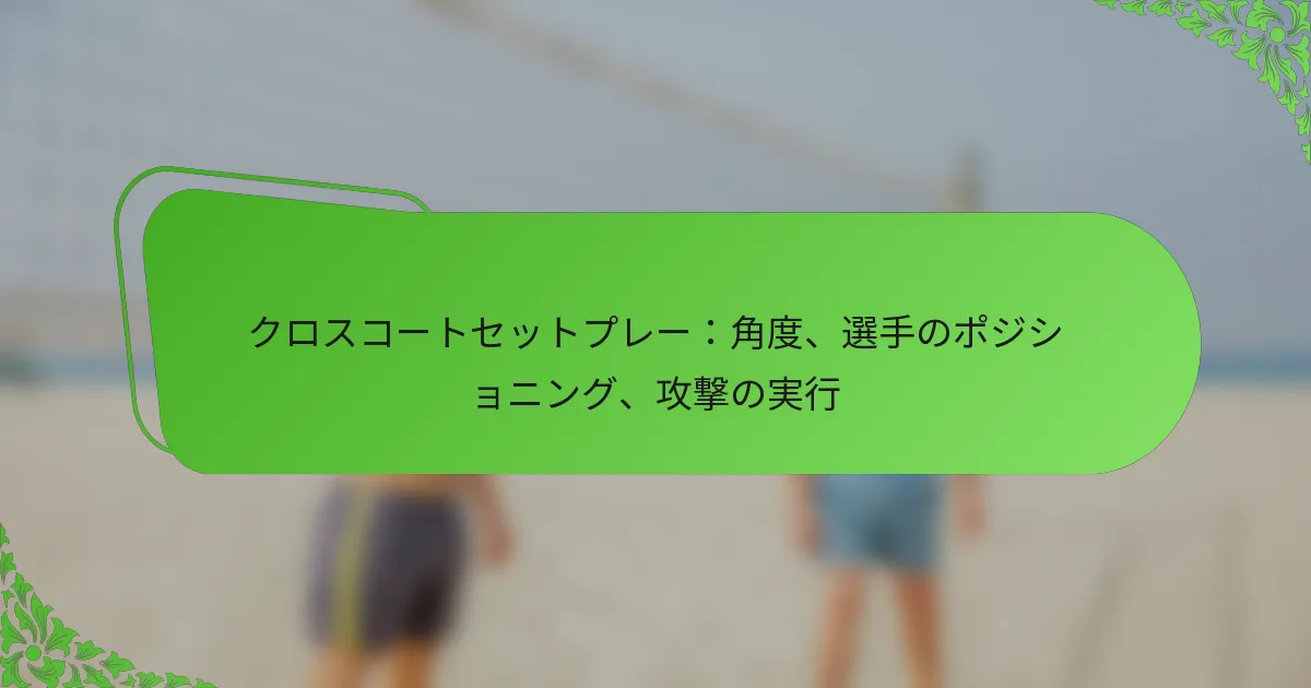 クロスコートのセットプレーでは、角度が選手の動きやコート上での位置を決定します。これらのダイナミクスを理解することで、チームは守備の弱点を効果的に突くことができます。選手は、自分の位置をボールや相手選手に対して意識し、攻撃の可能性を最大化する必要があります。