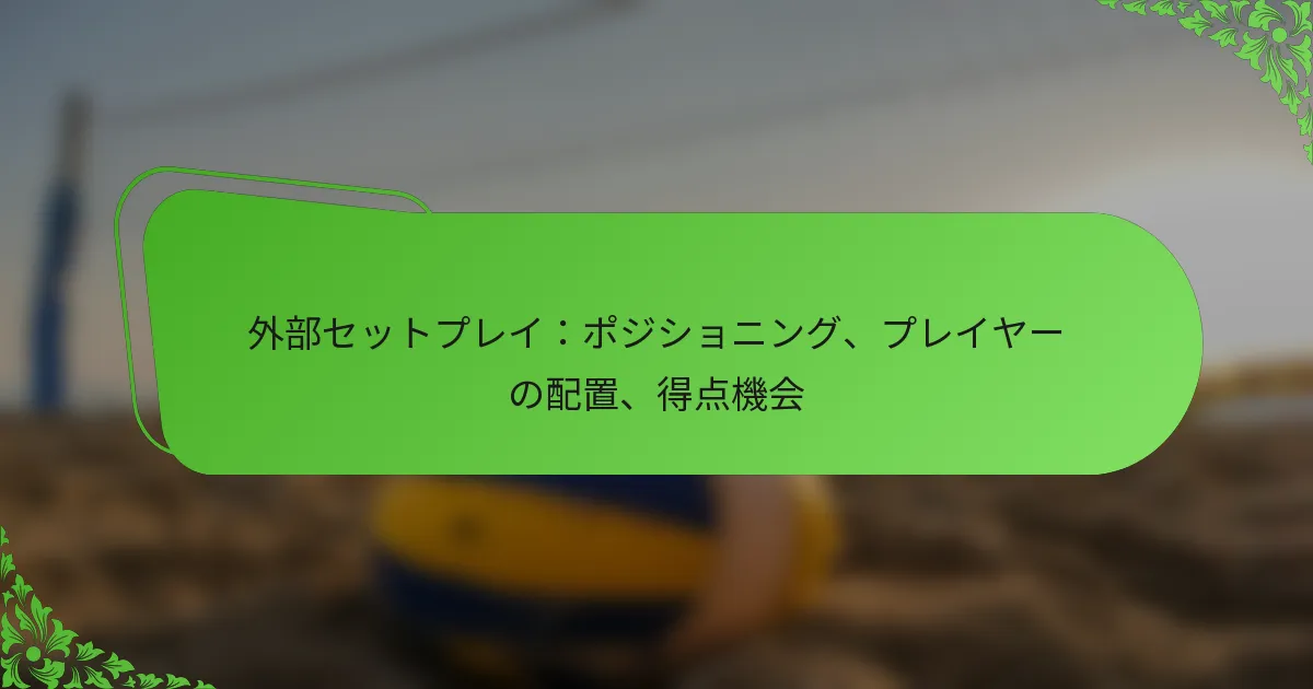 外部セットプレイは、選手のポジショニングとアライメントを活用して、ペリメーターから得点機会を生み出すための重要な戦略です。効果的なスペーシングと動きに焦点を当てることで、チームは守備の弱点を突き、高確率のシュートや成功するプレイを生み出すことができます。適切な実行は、選手の役割の同期と明確なコミュニケーションに依存し、得点成功の可能性を最大化します。