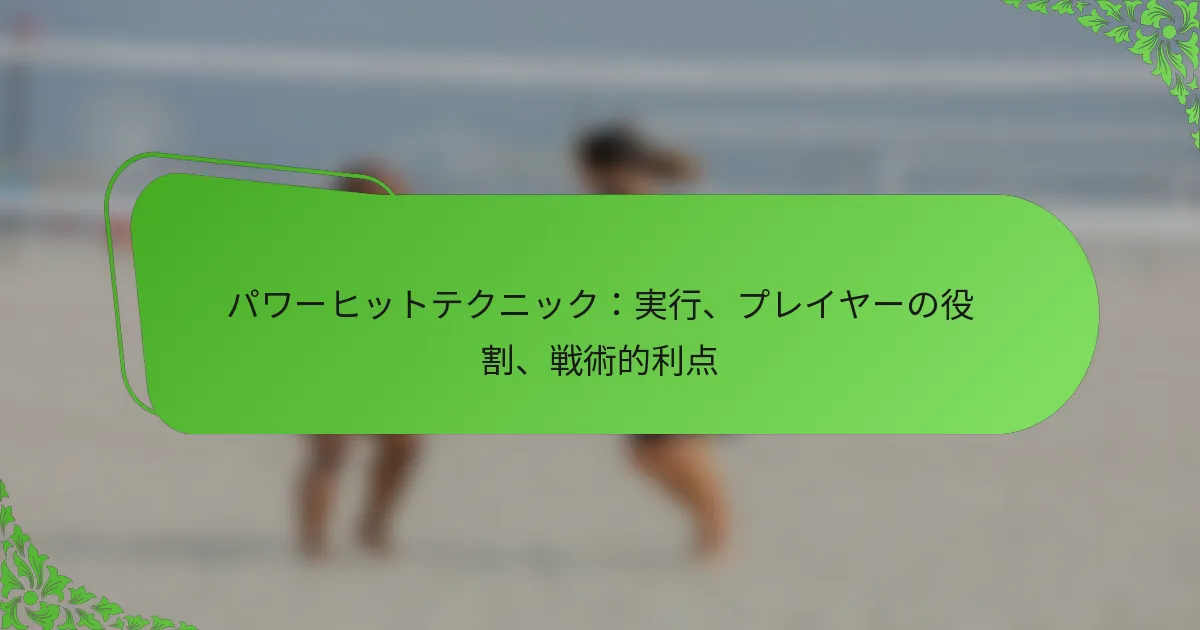 パワーヒットテクニックは、ヒット中に最大の力を生み出すことを含み、選手がボールを大きな速度と距離で送ることを可能にします。このテクニックは、身体のメカニクス、タイミング、力の組み合わせを必要とします。選手は、エネルギーを効果的に移動させるためにコアと脚を活用し、強力なフォロースルーを確保する必要があります。