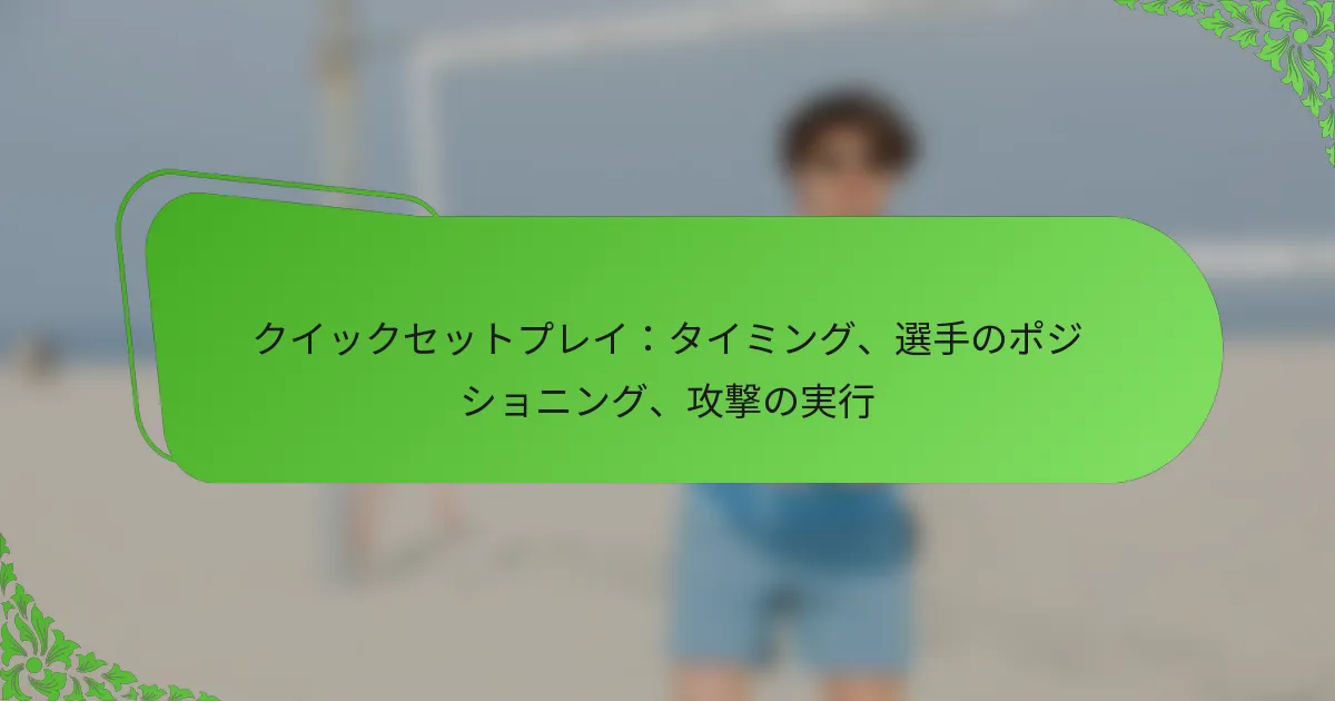 クイックセットプレイは、スポーツにおける戦略的な動きで、計画されたアクションを迅速に実行し、しばしば相手を驚かせることを目的としています。成功は、正確なタイミングと効果的な選手のポジショニングに依存しており、これにより攻撃の実行が向上し、貴重な得点機会が生まれます。